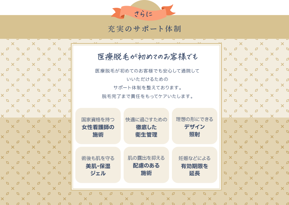 医療だからこその高い脱毛効果でツルスベ肌をキープし、日々の自己処理のストレスを無くしてくれます。