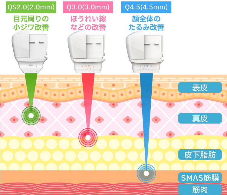 2.0mm、3.0mm、4.5mm とアプローチしたい層によってカートリッジを使い分けることでそれぞれの効果を期待できます。