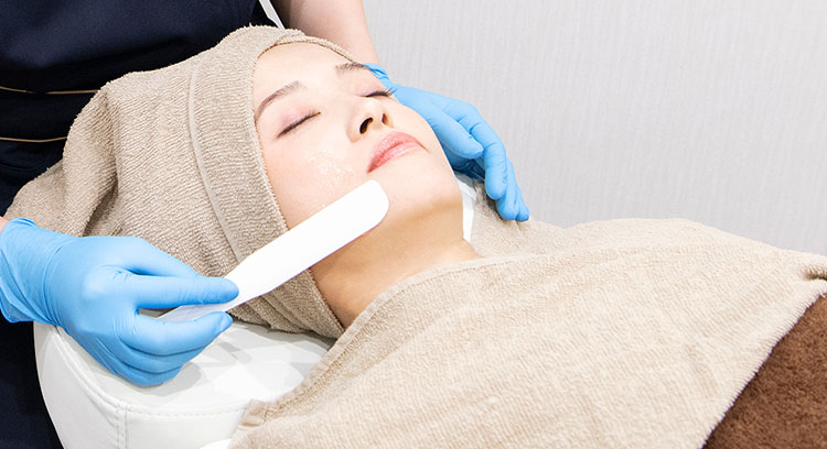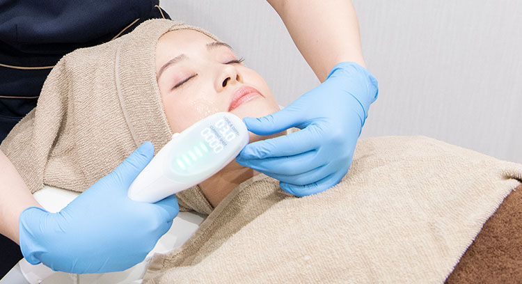 お顔のクーリングをした後、顔に残ったジェルを丁寧に拭き取り治療は終了となります。