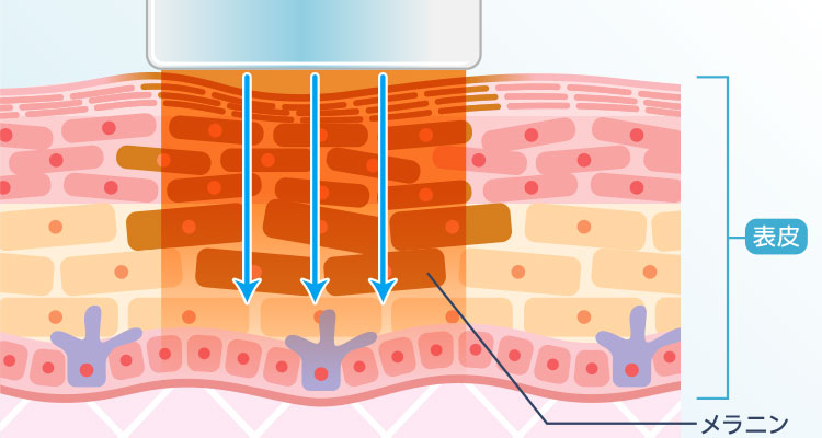 フォトフェイシャル(IPL) の光がメラニンを分解し、細胞の活性化を促す。