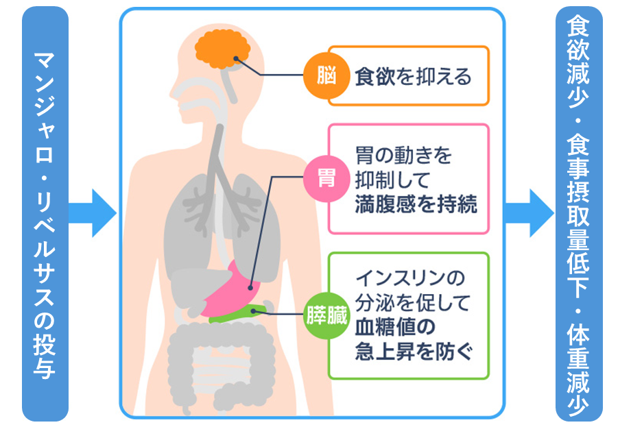 リベルサスは食べたものが胃から排出される時間を遅らせる作用があります。